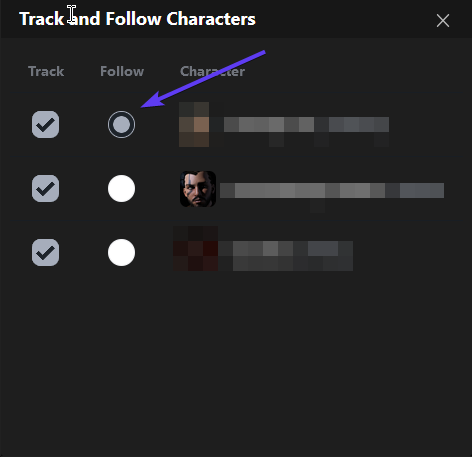 • Under the tracking menu, you can select which character the map will follow while scanning and splashing holes.